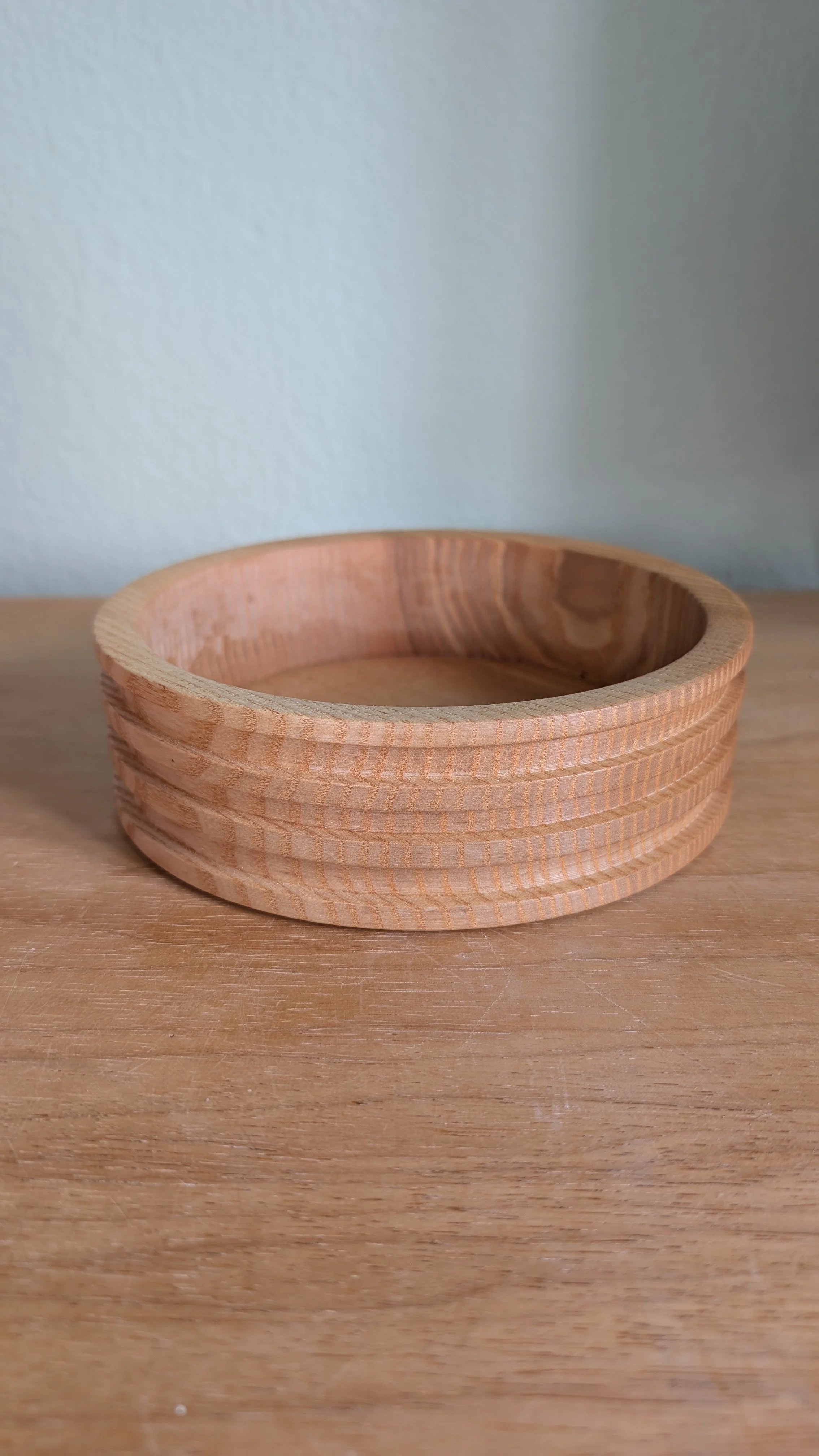 Handgedrechselt aus massivem Holz. Die Maserung erzählt vom Baum, die feinen Drechselspuren von der Arbeit. Jeder Teller ist ein Unikat.